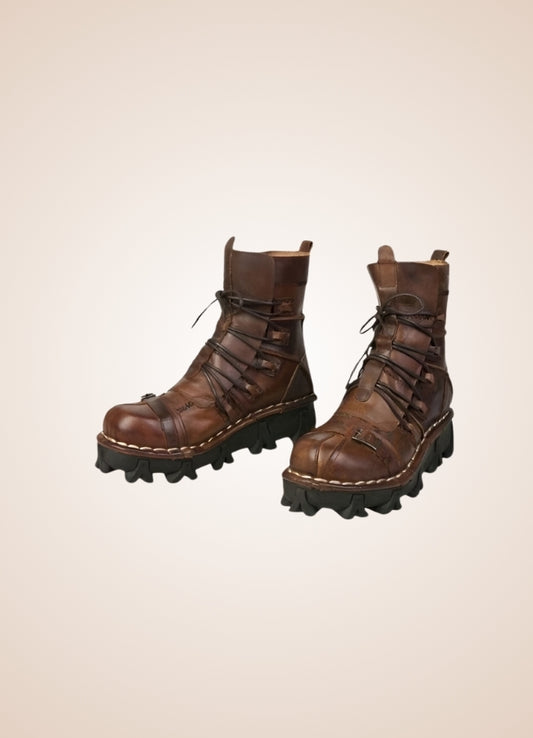 Discover authentic men's steampunk boots. Find Victorian-inspired leather footwear blending gothic & vintage styles. Perfect for conventions or everyday wear, featuring brass buckles, intricate lacing, and military designs. Complete your retro-futuristic look. Shop unique men's steampunk boots today.