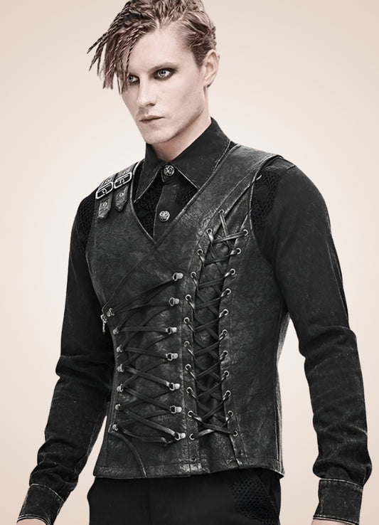 Venture into the intriguing realm where Victorian refinement collides with industrial grit in men's steampunk corsets. Eager to fashion a style that’s distinctly you? Picture leather adornments — belts satchels and gauntlets — complementing sumptuously patterned brocade shirts.