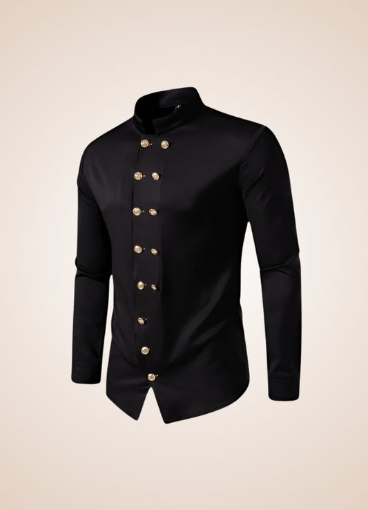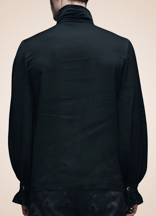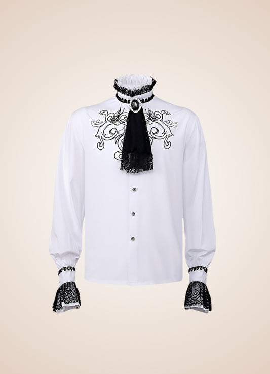 A men's steampunk shirt blends Victorian elegance with industrial elements, creating a retro-futuristic style. These shirts often feature details inspired by 19th-century aesthetics, science fiction, and the Industrial Revolution.