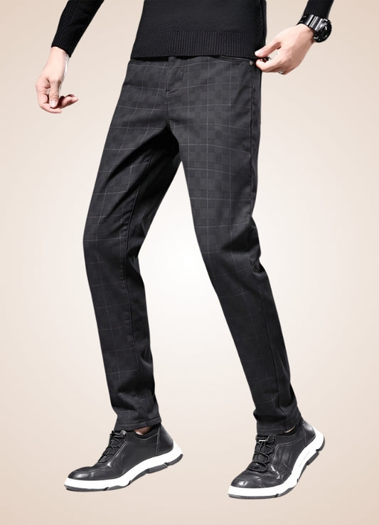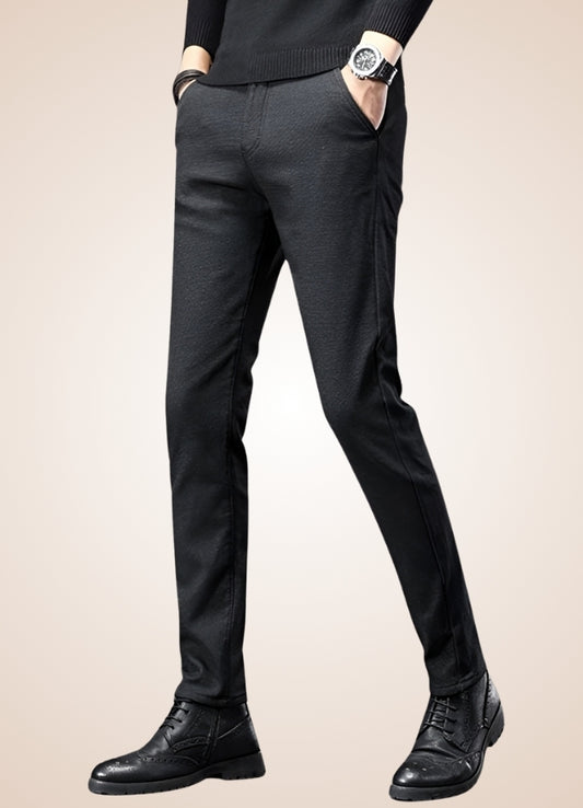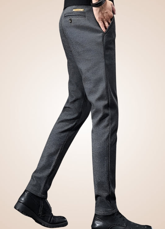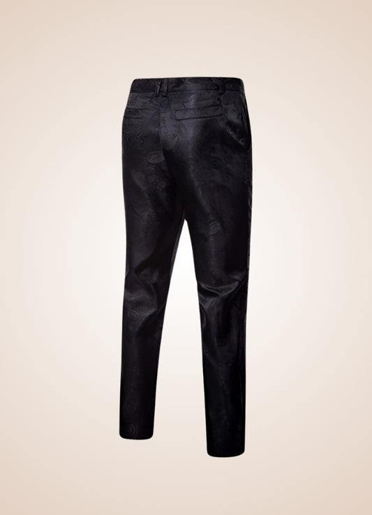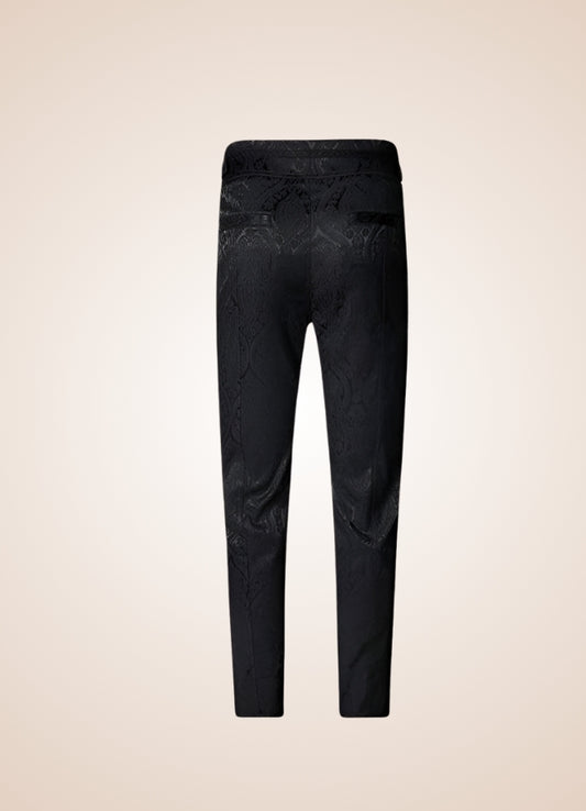 Other materials include polyester viscose blends for lightweight comfort, striped woven fabric for a gentlemanly look, and leather or faux leather for accents and details. These trousers often feature metal hardware and reinforced stitching to enhance their rugged aesthetic.