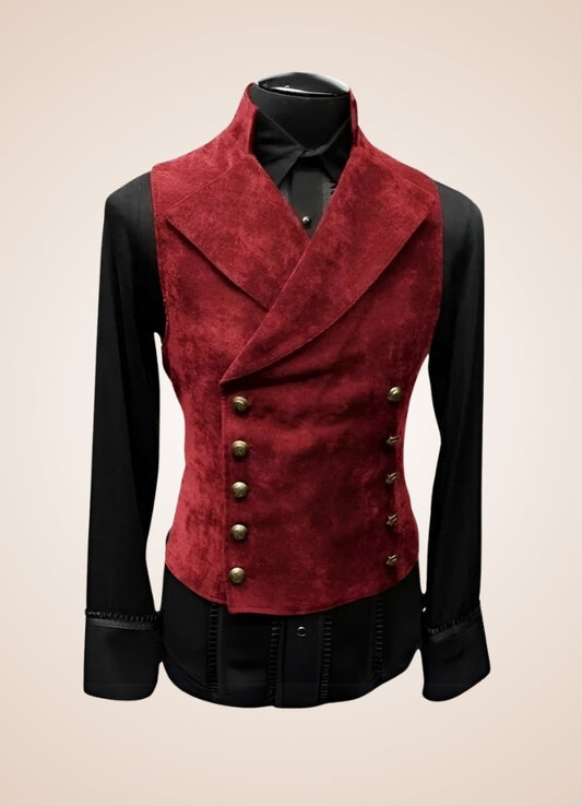Steampunk vests are crafted from a variety of materials to capture the aesthetic. Common choices include leather for a rebellious edge, velvet for Victorian grandeur, and brocade with metallic threads for a polished look. Jacquard, with woven patterns, adds an aristocratic touch.