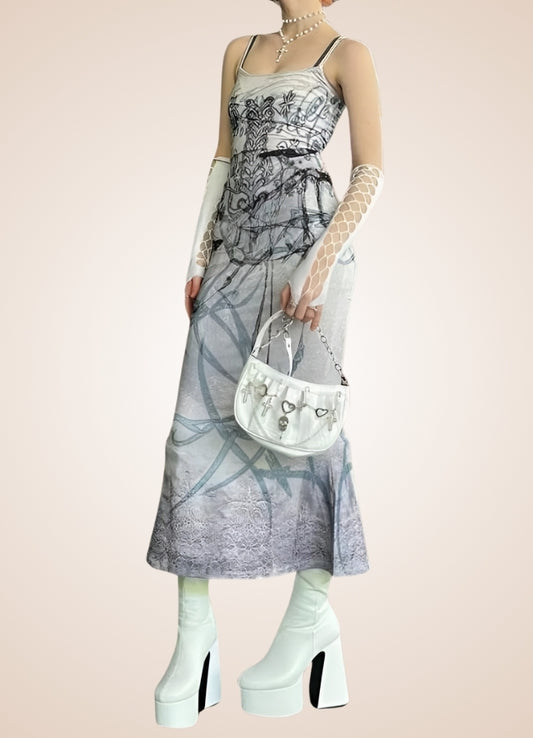 Grey Steampunk Long Dress