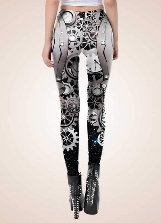 - Mechanical Motifs: Our leggings prominently feature gears, cogs, and clockwork patterns, embodying the industrial heart of steampunk style.