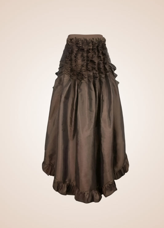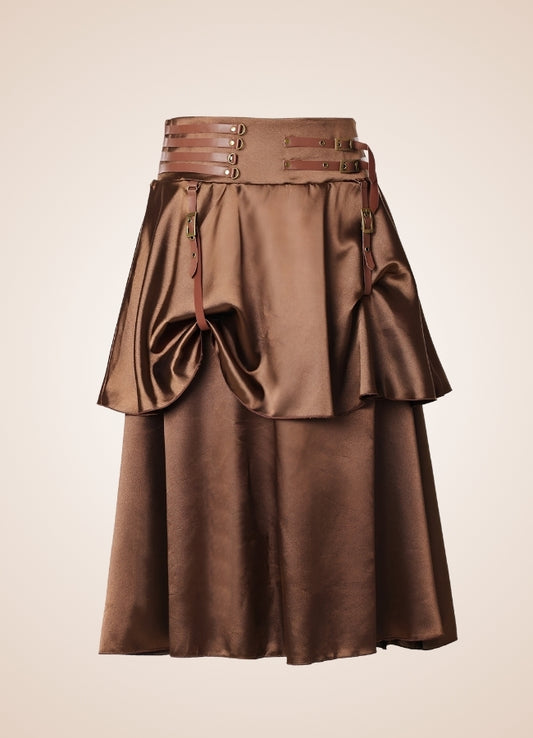 A steampunk skirt is a garment that blends Victorian fashion with industrial elements. It often showcases details like ruffles chains and rich textures crafting a distinctive and personalized aesthetic. This style draws inspiration from the romanticized vision of science during the Victorian era and integrates components from the Industrial Revolution.