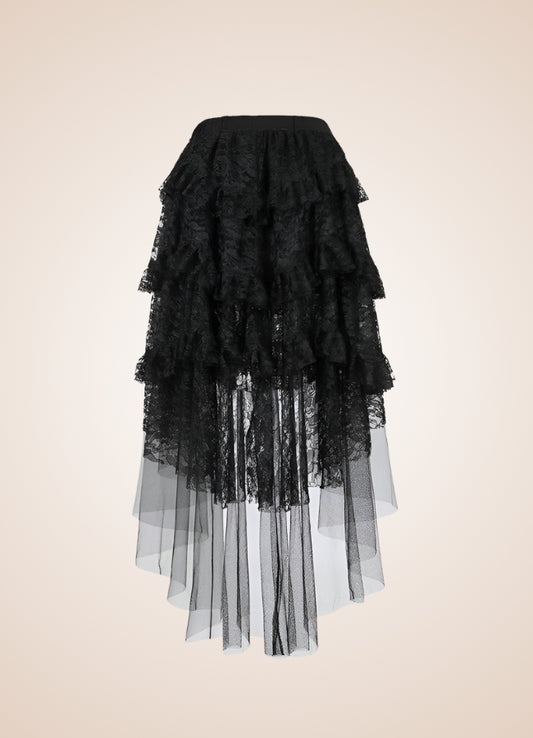 These skirts sometimes called Victorian or gothic-inspired skirts interweave historical styles with contemporary dark aesthetics. Common details such as ruffles and lace highlight this historical influence.