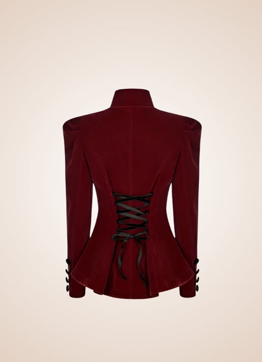- Adjustable Corset Back: Perfect your silhouette and shape of your jacket with an adjustable corset back granting a custom and flattering form. This element introduces a hint of Victorian grace.